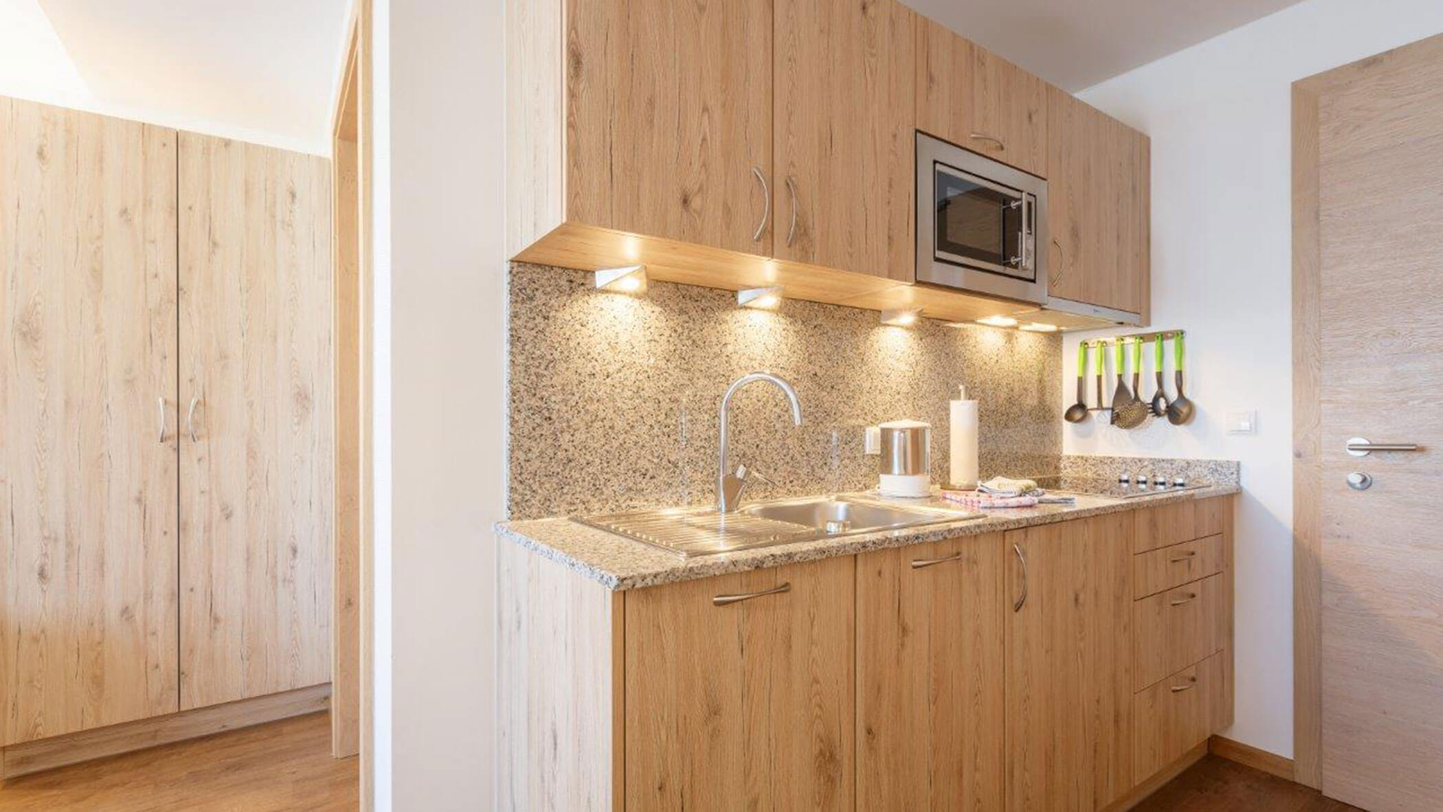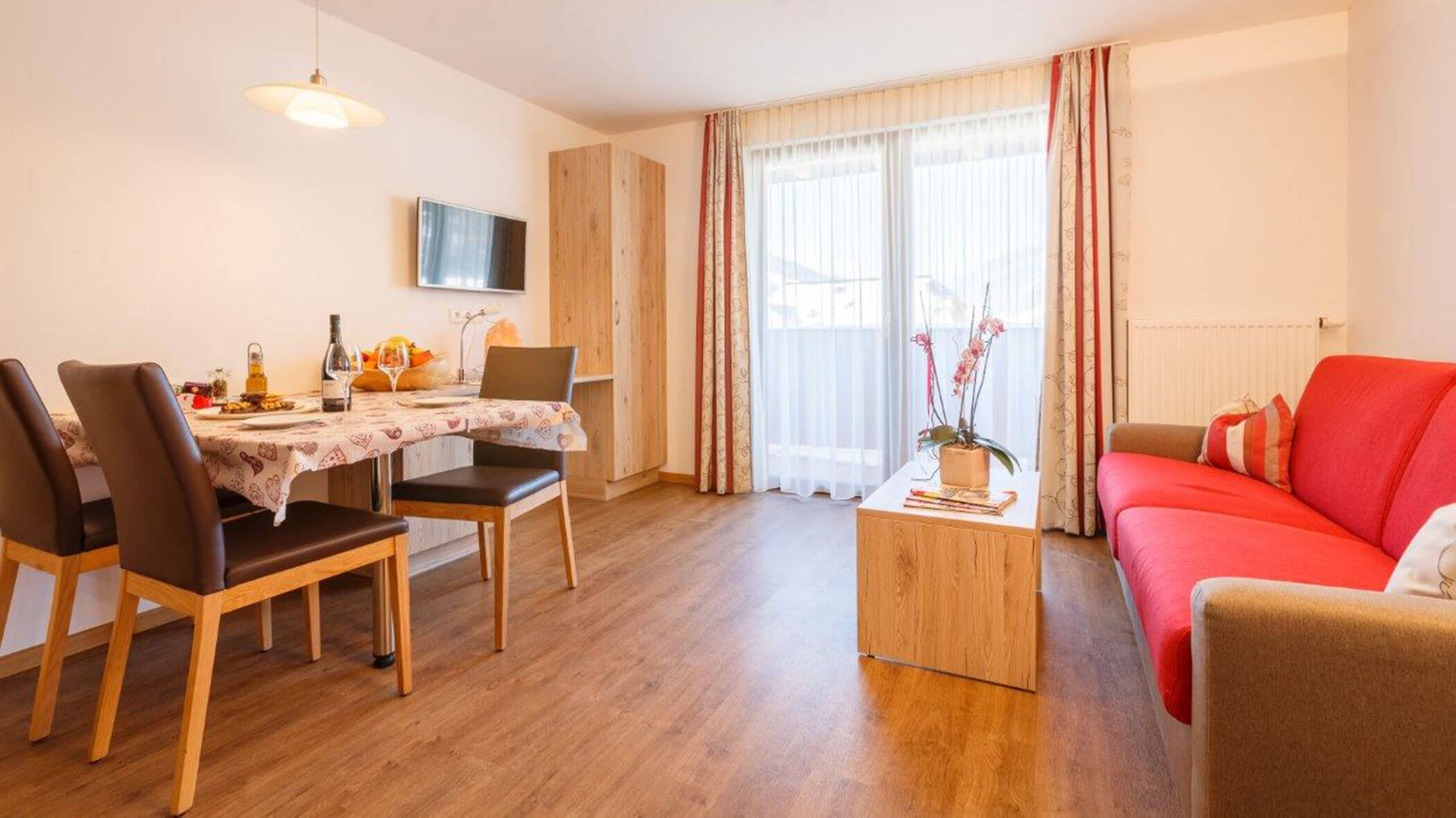 Ideal für 2 bis 4 Personen – mit Wohnzimmer, voll ausgestatteter Kochnische und ausziehbarer Couch für 2 Personen, Doppelzimmer und Bad mit Dusche. Diese Apartments sind komplett renoviert und verfügen alle über einen Balkon.